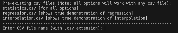 - Users can load CSV files as they are prompted