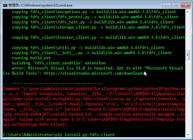 你好,我在 pip install fdfs_client-py 和 fdf_client 和 py-fdfs-client 都遇到了下面的问题
