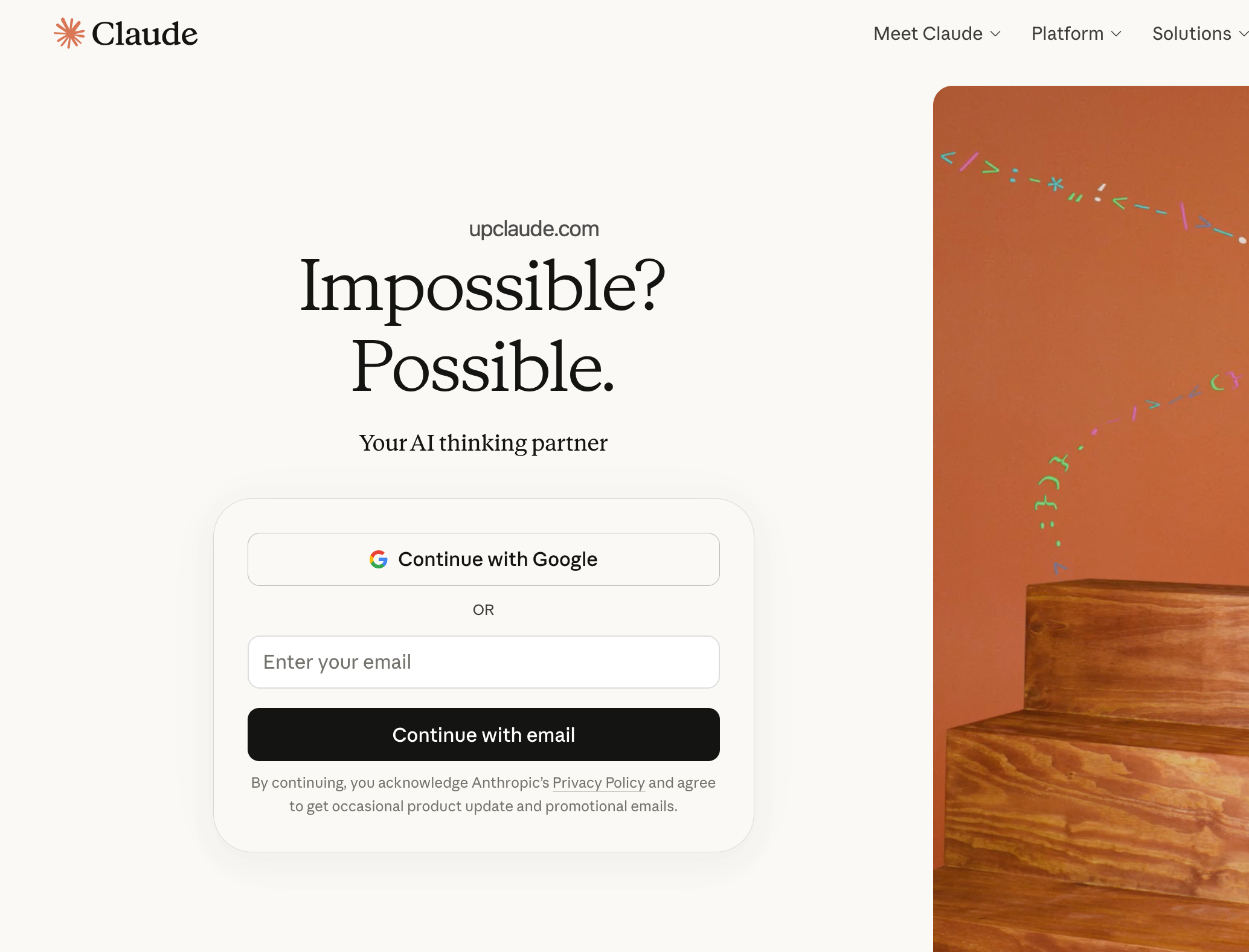 输入你的 Gmail 地址,点 "Continue with email"。如果你有 Google 账号,直接点 "Continue with Google" 授权登录更快,省得收邮件验证码。