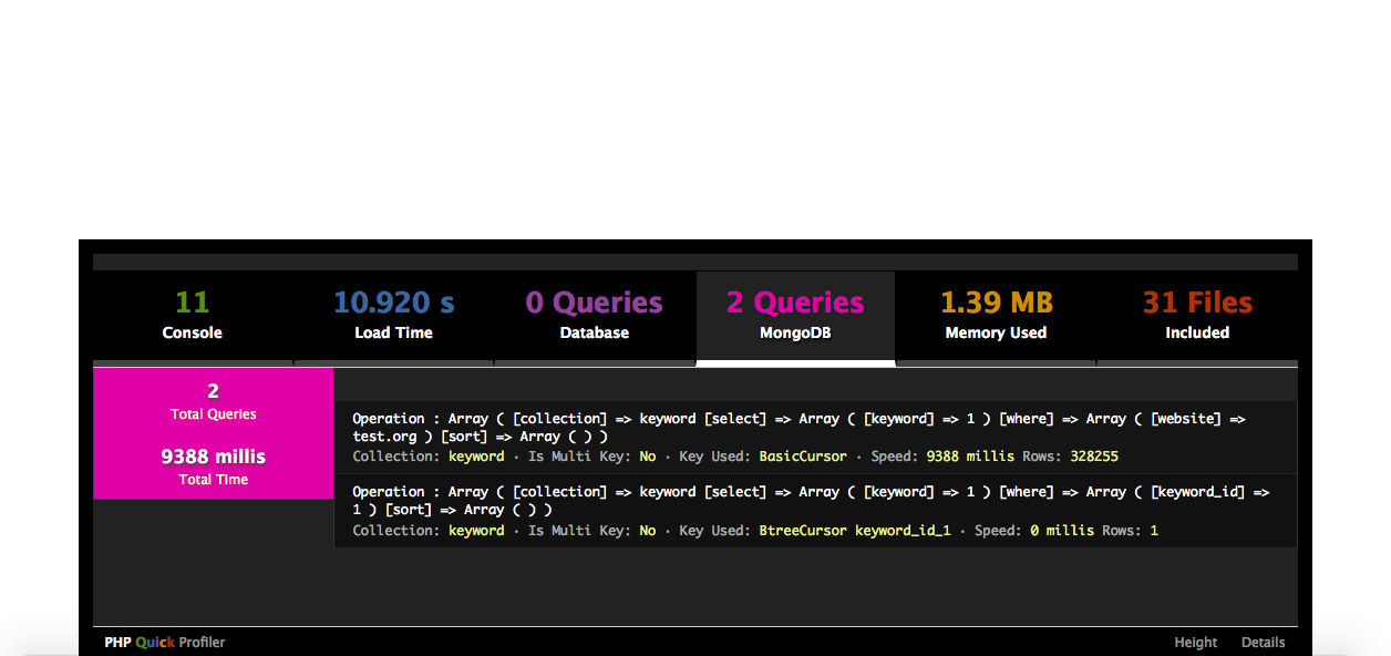 ###Update : Added codes to profile MongoDB. You can profile not only mySQL queries but also quries from MongoDB as well in this profiler. To activate MongoDB profilling just use my MongoDB library for Codeigniter