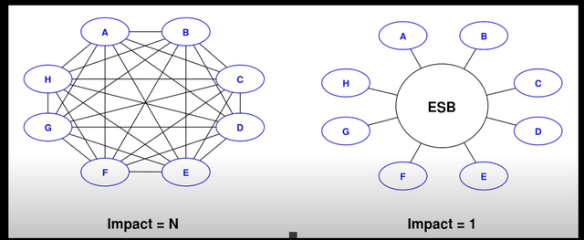 The left figure is clients communicating to each other, the right is a queue service such as RabbitMQ