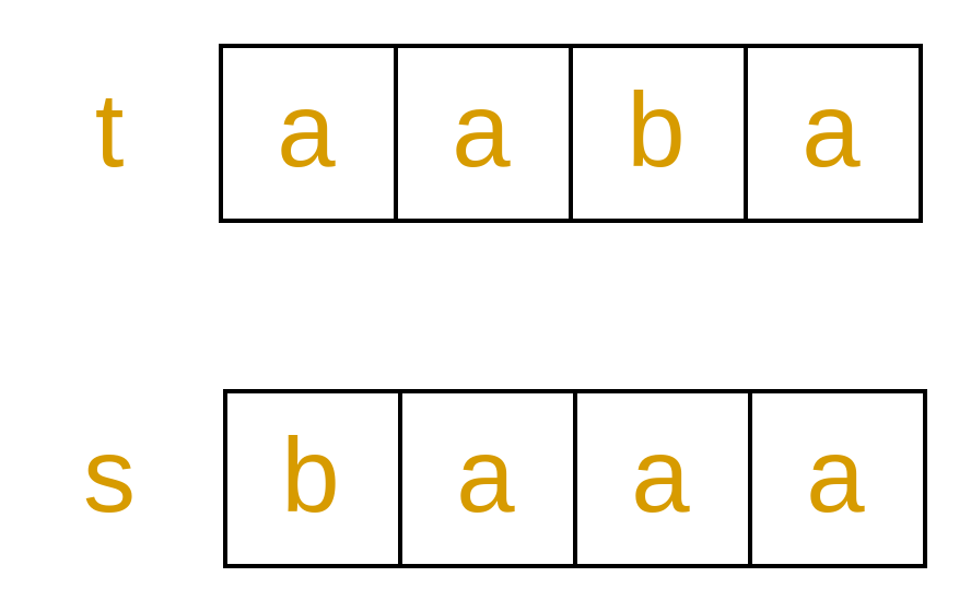 則 t, s 的字元組成相同,也就是 s, t 中的字元種類相同且個數相同