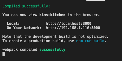 Finally, to start the application, type "npm start" to have it running locally on your PC. The default local host should be localhost:3000 in your browser.