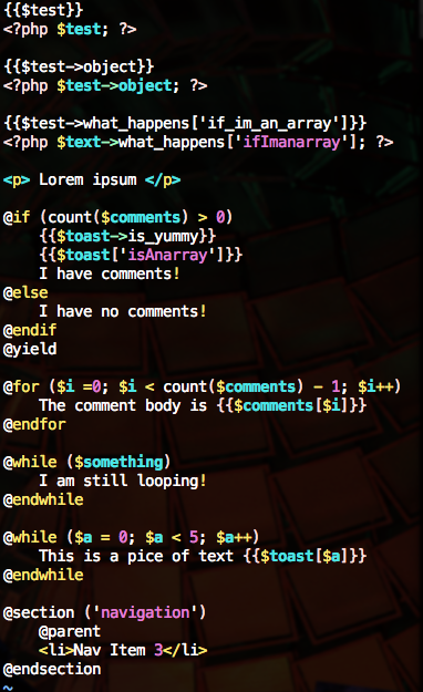 @yield isn't highlighted (it's not actually valid like that -- but it's still not highlighted if I change it to @yield('sectionname')