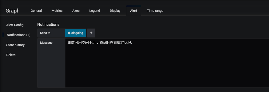 Notifications配置通知渠道,然后保存,名字不用填。4)很快钉钉就收到内存低于4G的报警