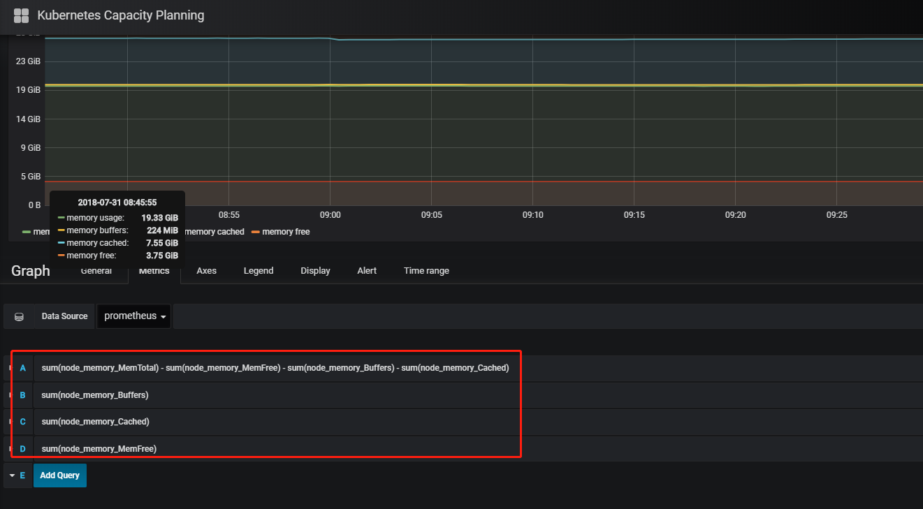 1)打开Kubernetes Capacity Planning下的Metrics Tab查询,查看是否有满足要求的查询条件,没的话可以自己新增。
