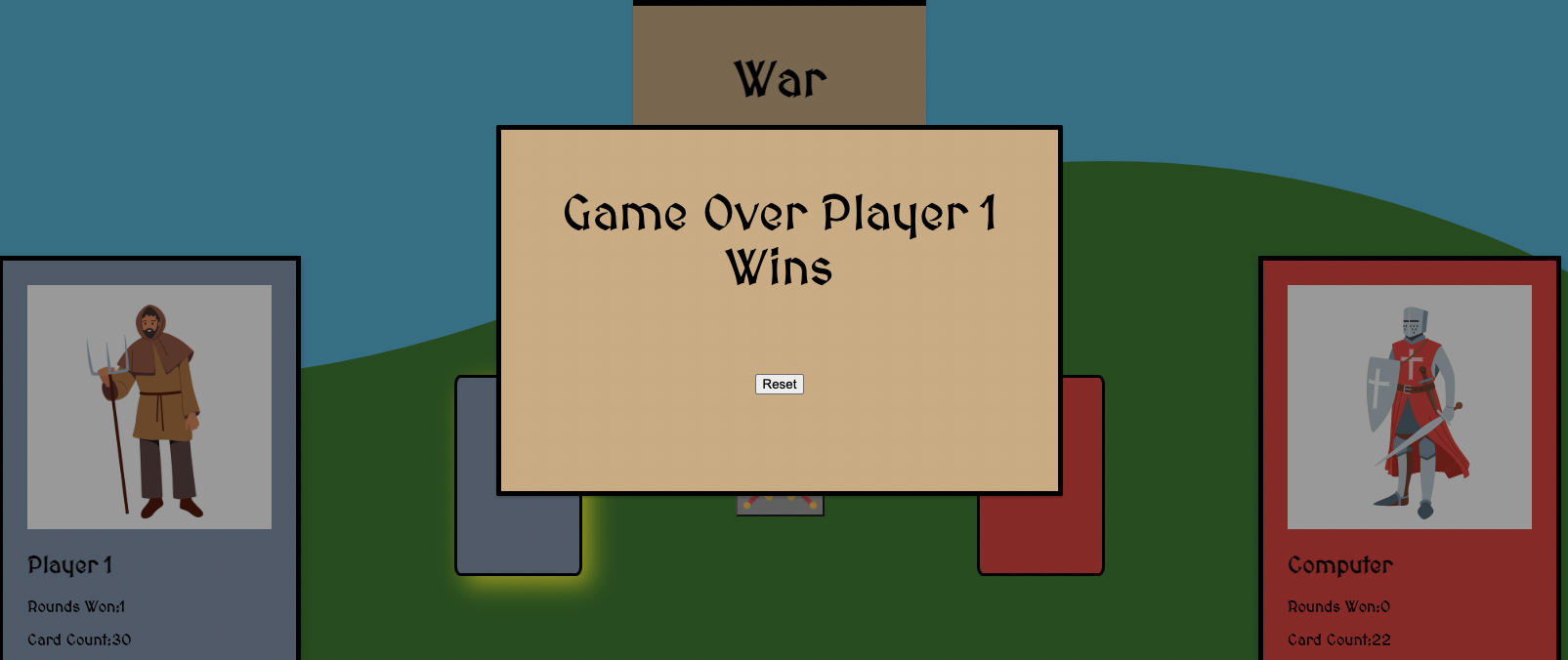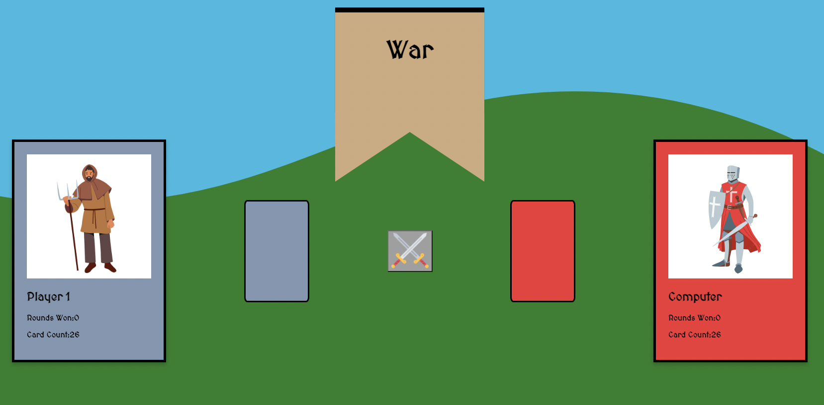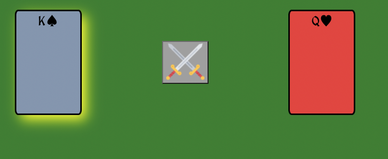 LINK ->https://kellumdavis.github.io/WarCardGame/ PRESS START AND THEN THE SWORDS TO DRAW YOUR CARDS! GOOD LUCK!
