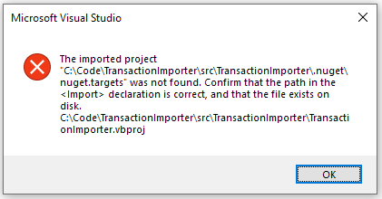 The extension is trying to find it in C:\Code\TransactionImporter\src\TransactionImporter\.nuget