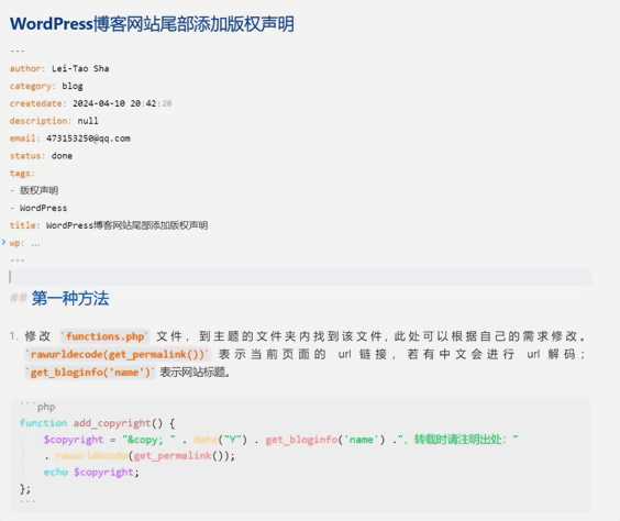 }title, categories, and tags need to be written separately under the first-level fields, and other setting fields are placed in the wp field.