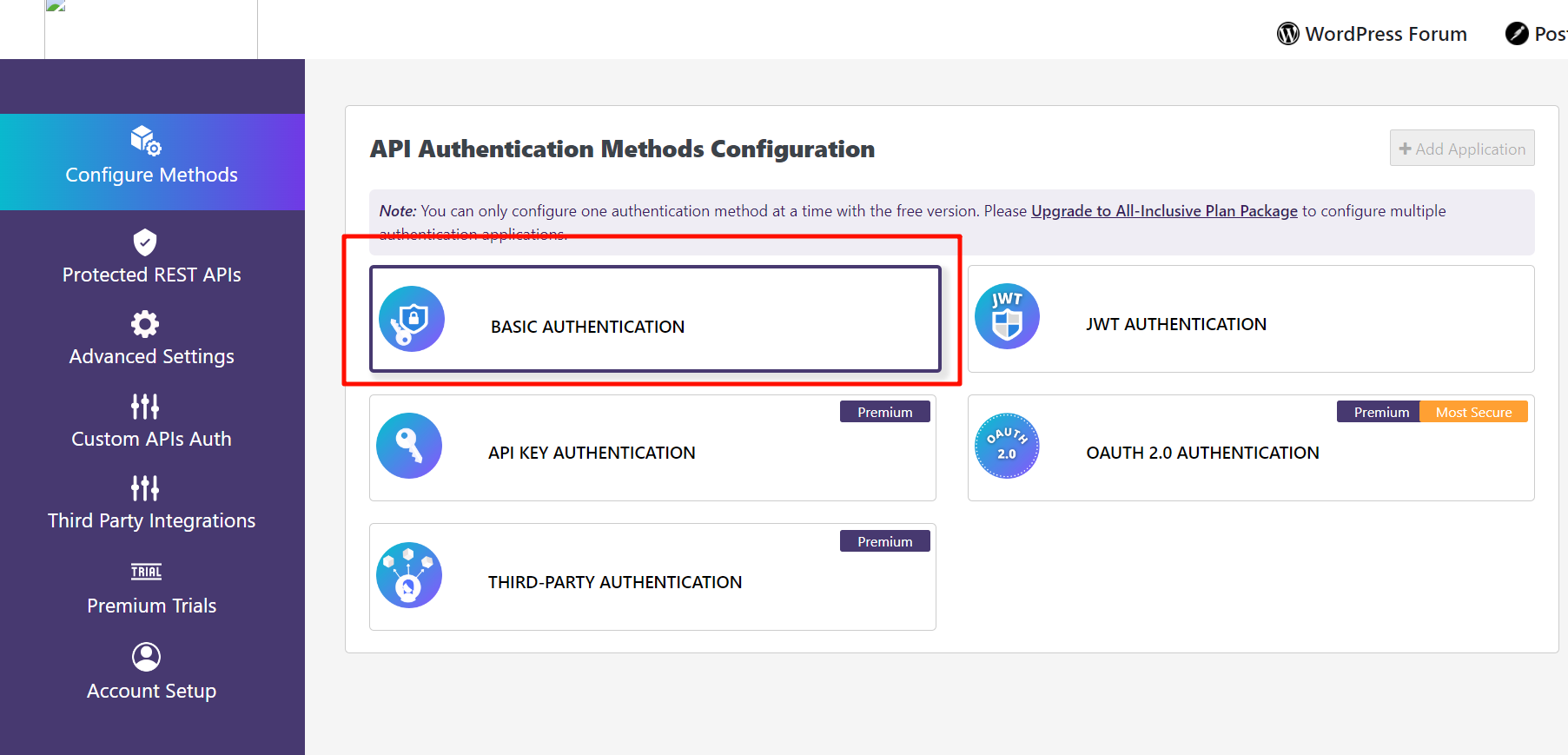 Open the plug-in and follow the prompts to create a BASIC AUTHENTICATION.