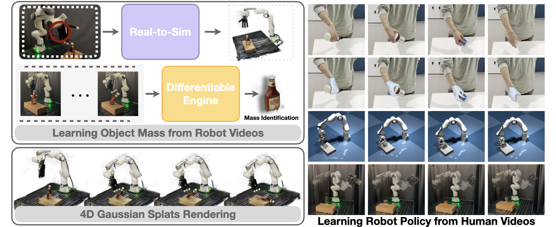 - performs end-to-end mass identification through a differentiable physics engine using real observations and robot interaction data,