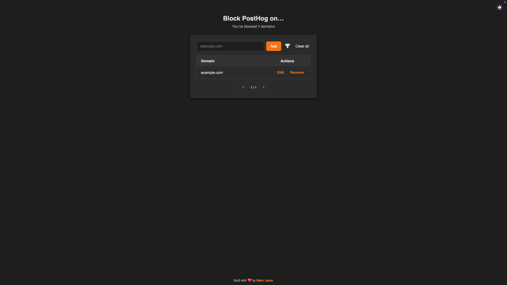 example.com) - The extension will automatically block PostHog on: