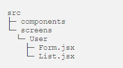 Мы сохраняем экраны в отдельной папке, находящейся в src, потому что они будут сгруппированы в соответствии с маршрутом, а не модулем: