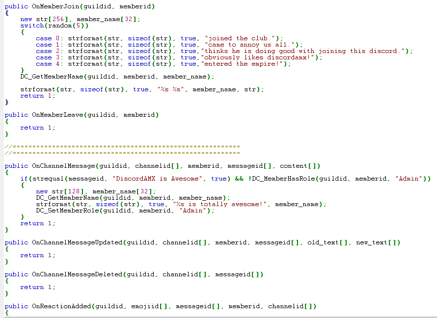 A .NET Console App that lets you script your Discord Bots using the awesome PAWN scripting language. The core goal is to make Discord Bots more easier for everyone! For more about PAWN click here. This project depends heavily on DSharpPlus. A .NET Framework package allowing me to interact with Discord's API as easy as possible.