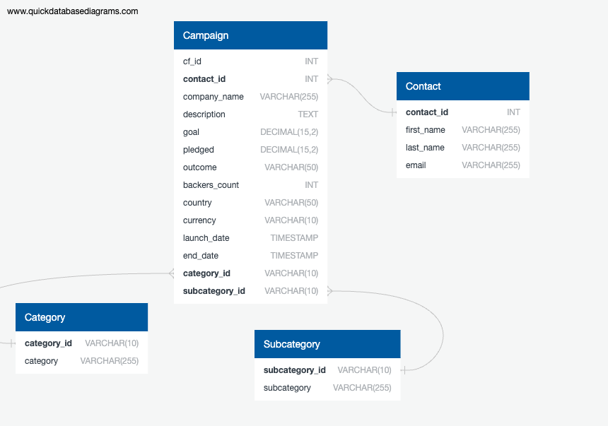Comprehensive ETL (Extract, Transform, Load) pipeline for processing and analyzing crowdfunding campaign data with robust database design.