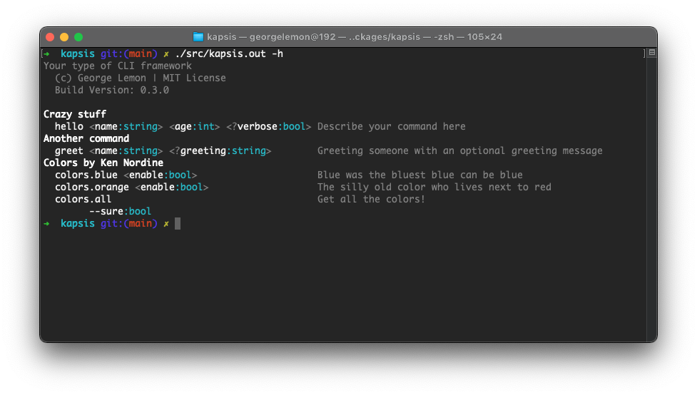 Kapsis can collect metadata from the provided statements, but if not provided it will try to extract it from the .nimble file, so you can choose to provide it in either place. The metadata includes: