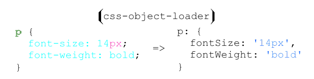 Webpack loader to load CSS into an object. The object has keys that are selectors from the CSS file; the value of each selector are the rules converted to camelCase properties (see Style Object Properties). This object is compatible with React Inline Styles.
