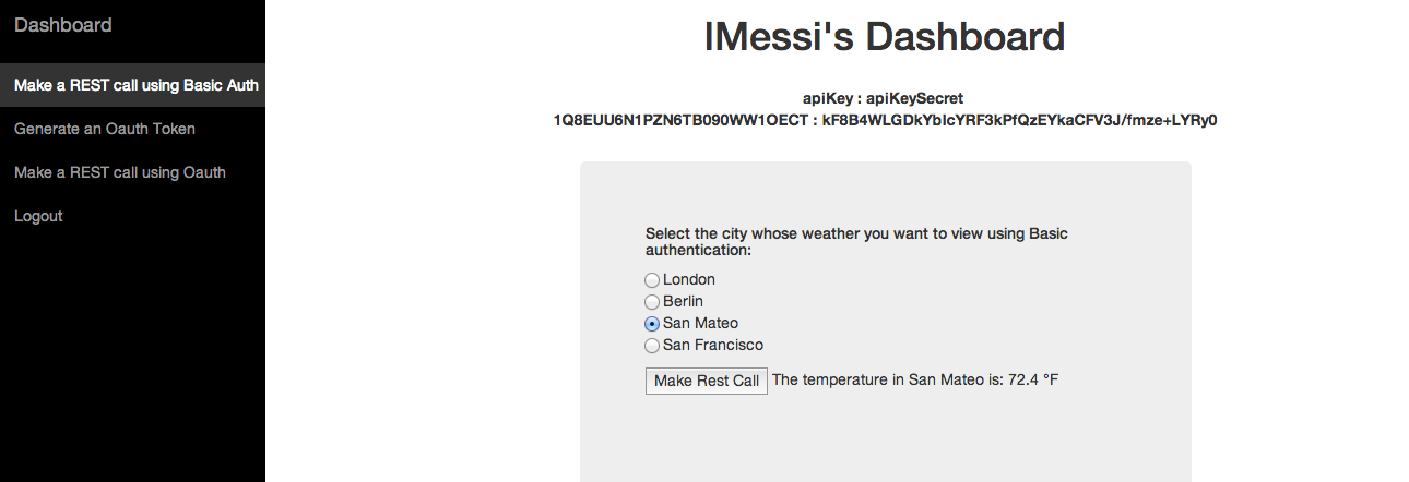 Click this sidebar link and the functionality will pop up in the center of the page. Select a city and experience the simplicity of Basic authorization!
