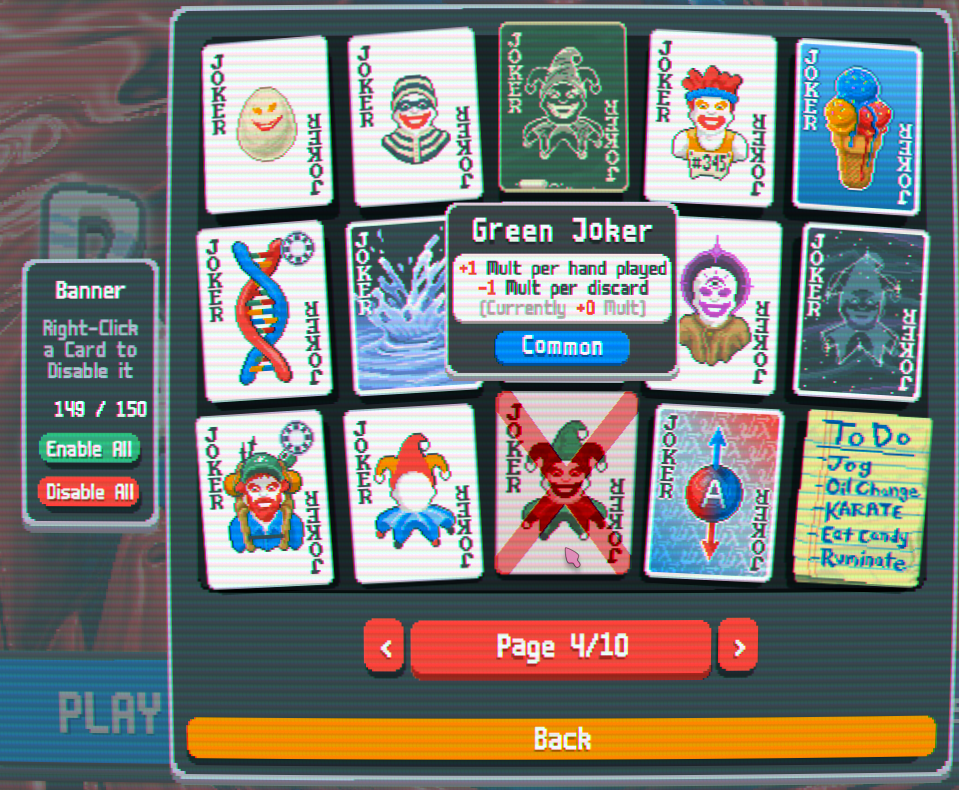 A Balatro mod to disable specific Jokers, consumables, and more from randomly appearing in-game.
