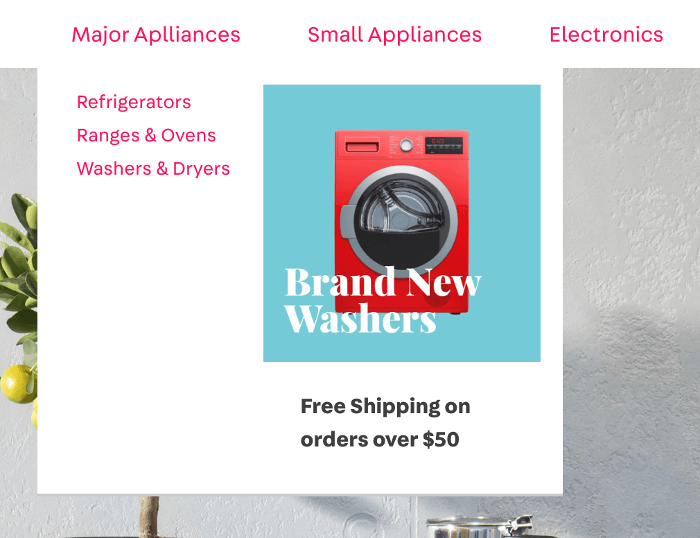 De acuerdo con lo que se practicó en la actividad anterior y lo que se aprendió sobre Flex Layout, apliquemos Flex Layout en el Submenú de Major Appliance.
