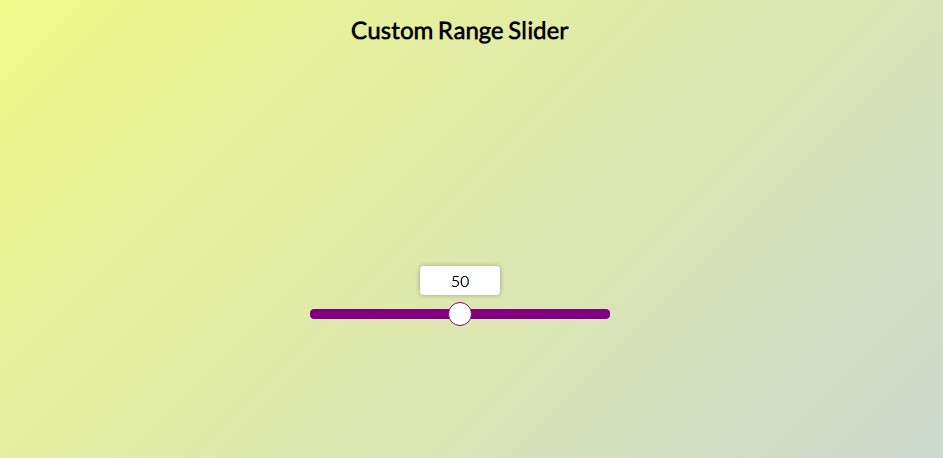 Controle deslizante customizado utilizando seletores vendor-prefixed (-webkit-, -moz-, -ms-, etc) e JavaScript para movimentar e alterar o valor do indicador do controle deslizante. Foi desenvolvido no curso 50 Projects In 50 Days.