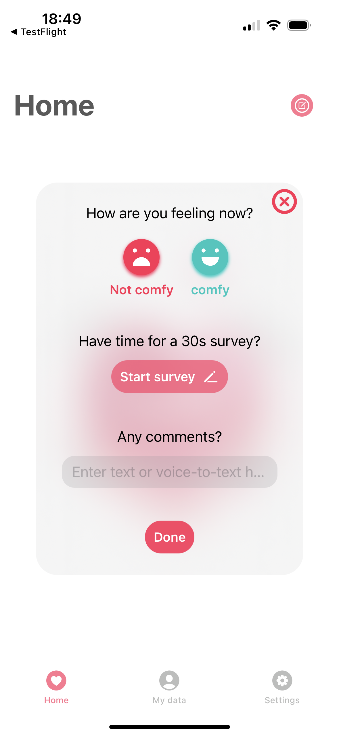 The app is equipped with survey logic modified from on Cozie (an app that allows building occupants to provide feedback in real time): https://github.com/cozie-app/cozie-apple
