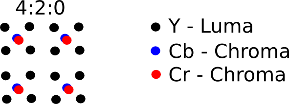 - Down-sample YCbCr to 4:2:0, i.e. uses the 2:1 horizontal downsampling and the 2:1 vertical downsampling. You will irreversibly lose information here.