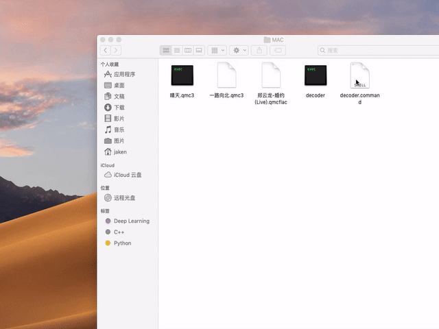 For mac user, double-click the decoder.command file, before you need to put the decoder.command and decoder files in the qmc music file directory.