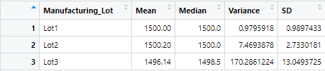 - T-test analysis to determine if the manufacturing lots are statistically different from the mean population