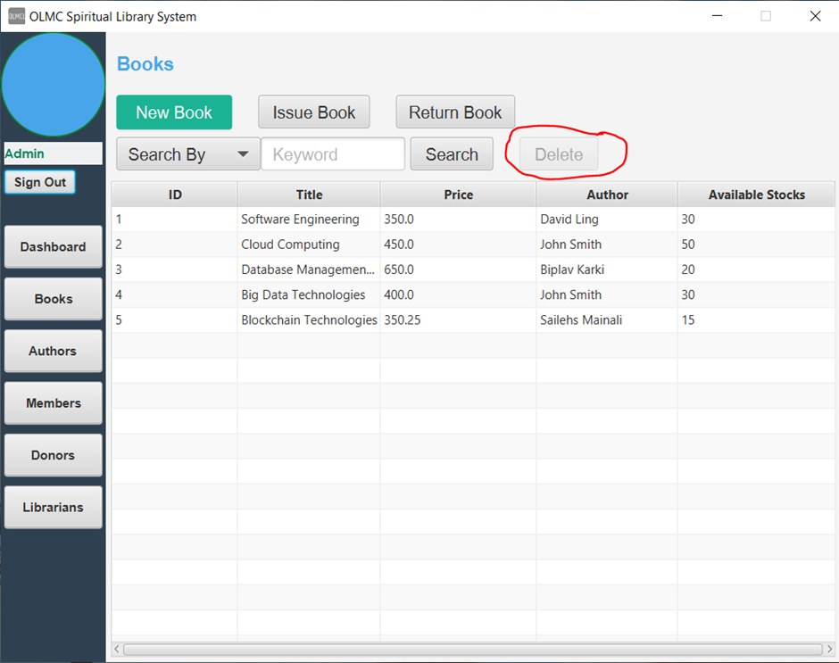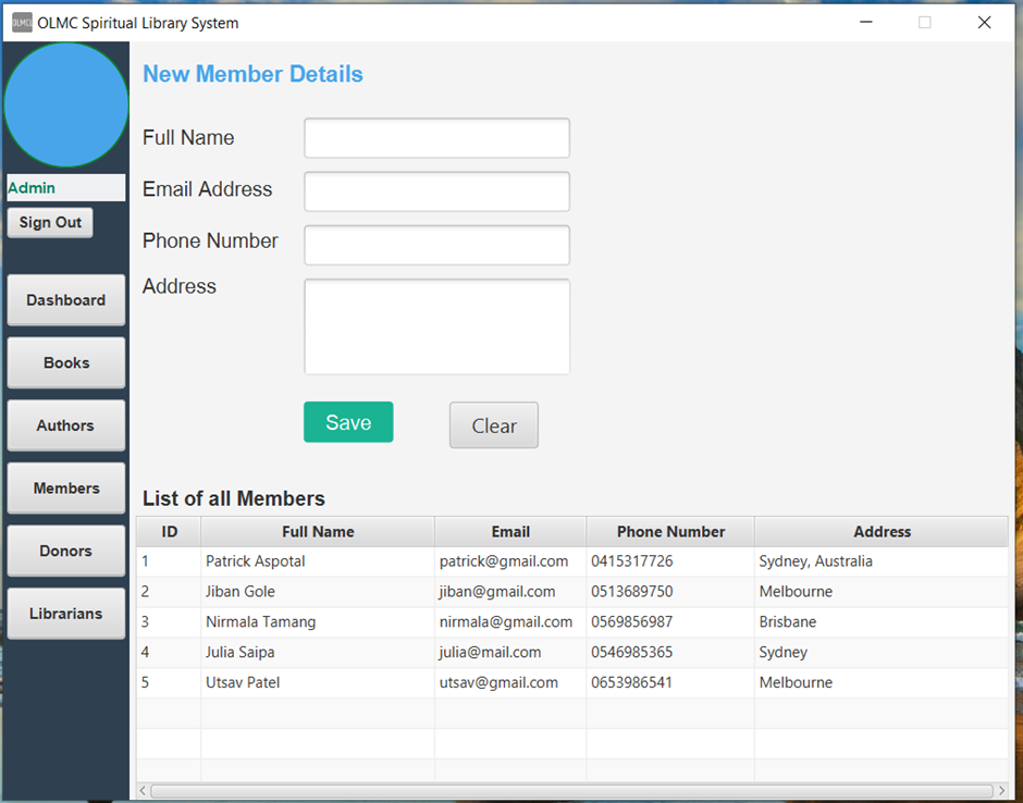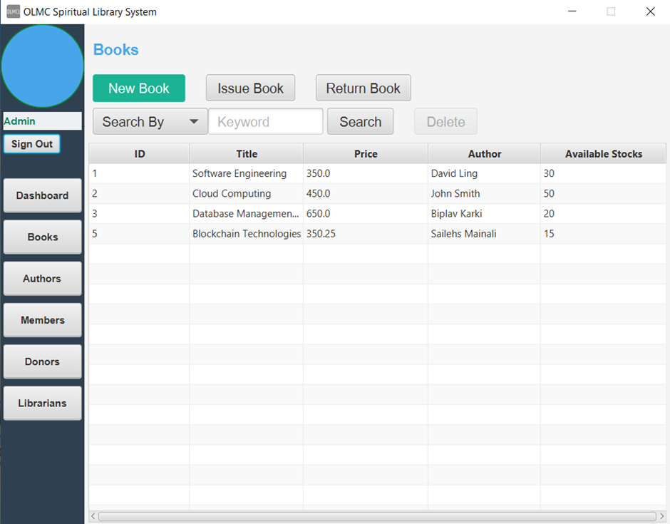 Fig. 3 Librarians module is available for Main Librarian only in OLMC Spiritual Library System