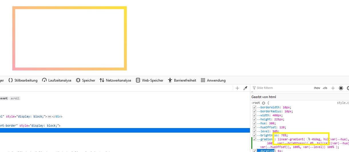 i wanted to make a border with a linear gradient and a slight angle to it, but those options are missing from the form. played around a little bit and had to change