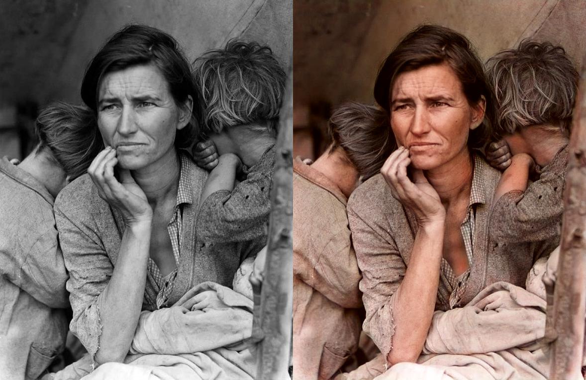 $ python src/colorize.py --weights model/weights.h5 --source source.jpg --output output.jpg