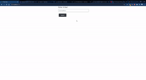 A full stack appliocation where the user can enter any goals they want to achieve (e.g. "get more sleep" or "lose weight") and the output will automatically display advice on how to accomplish that goal. Web data is scraped from WikiHow.