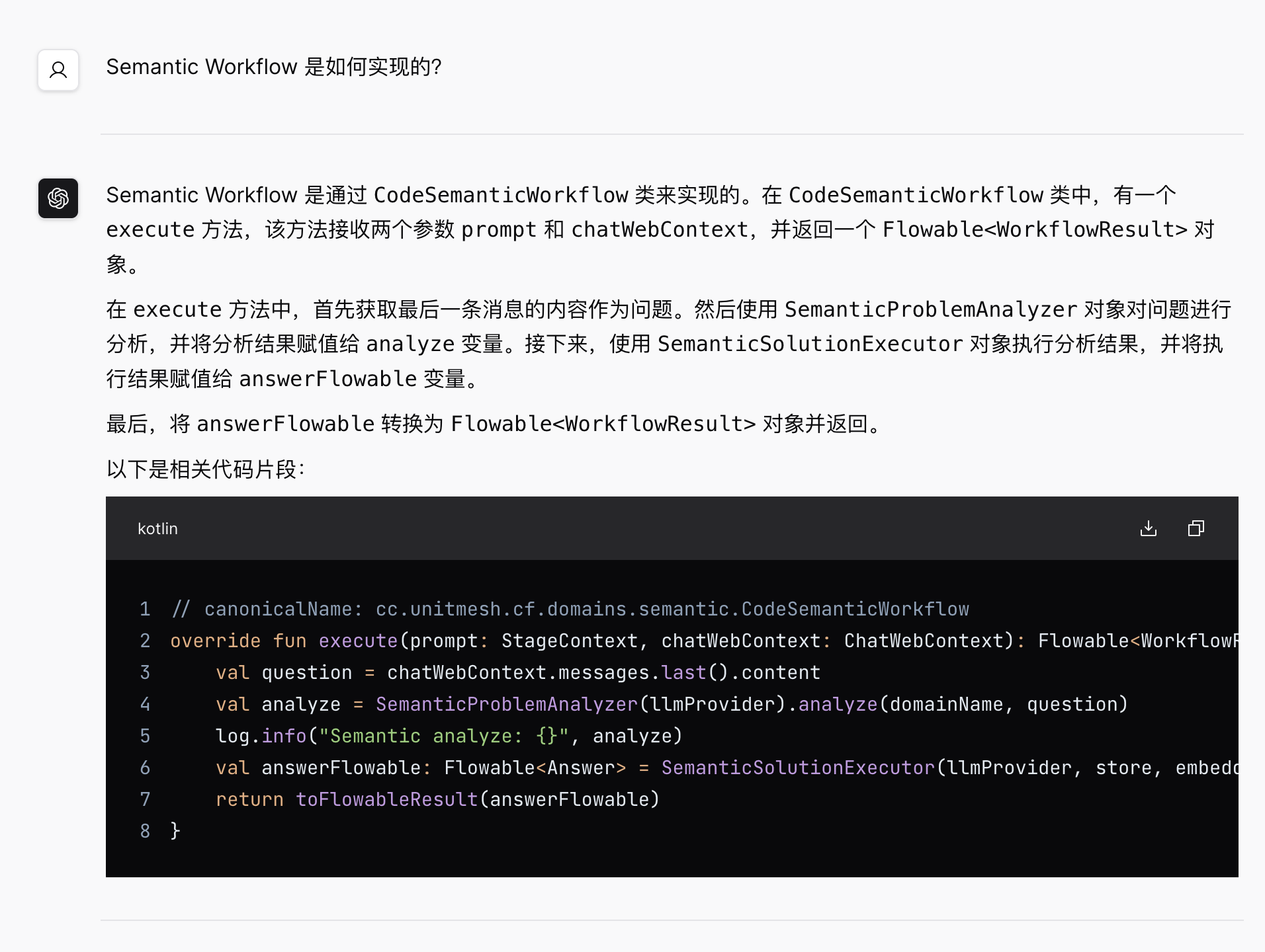 示例输入:Semantic Workflow 是如何实现的?