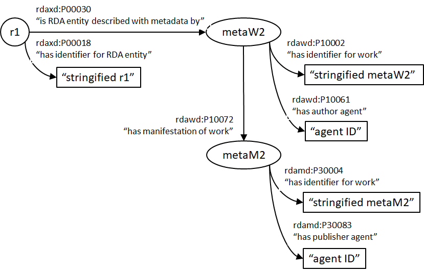 Here is a generic model for metadata provenance in RDA: I have used the broadest classes and properties; e.g. Agent instead of Person. I hope this helps. |