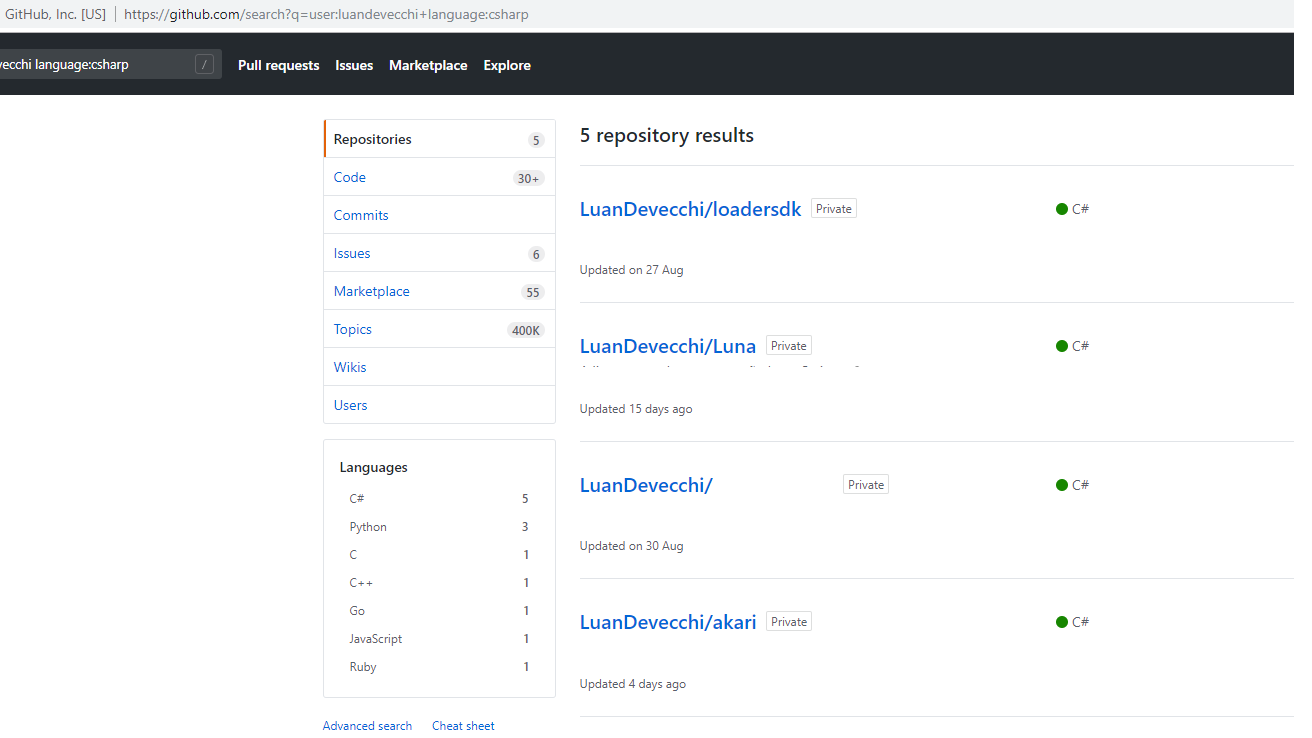 If we click on 'Repos' link in C# ranking  We are redirected to  but it returns C repos, since the correct keyword is csharp and not C#  if we use 'csharp' keyword then