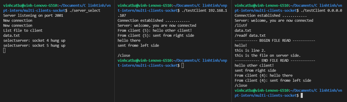 - Server sử dụng select() để xử lý nhiều client (nhiều fd) cùng lúc