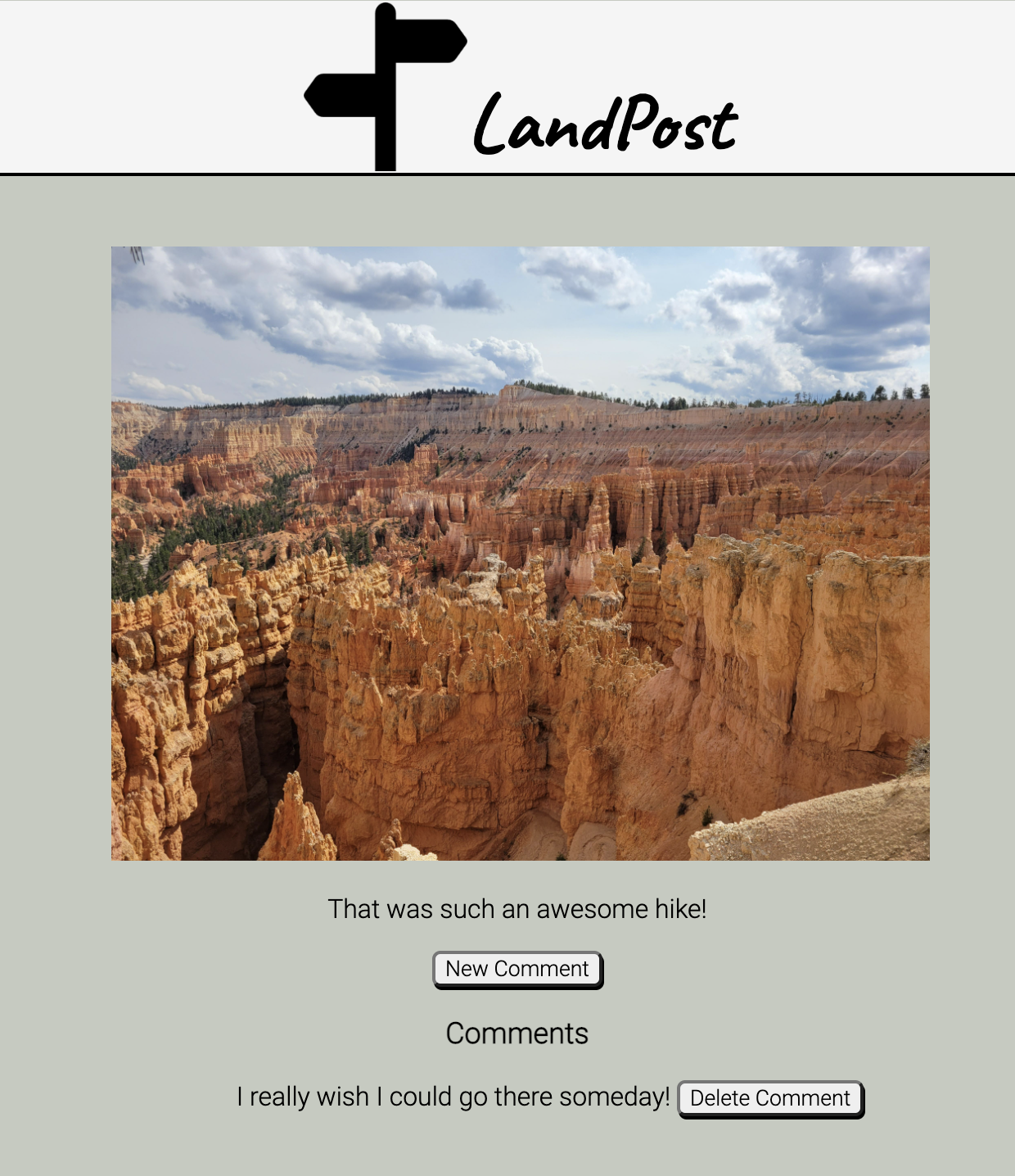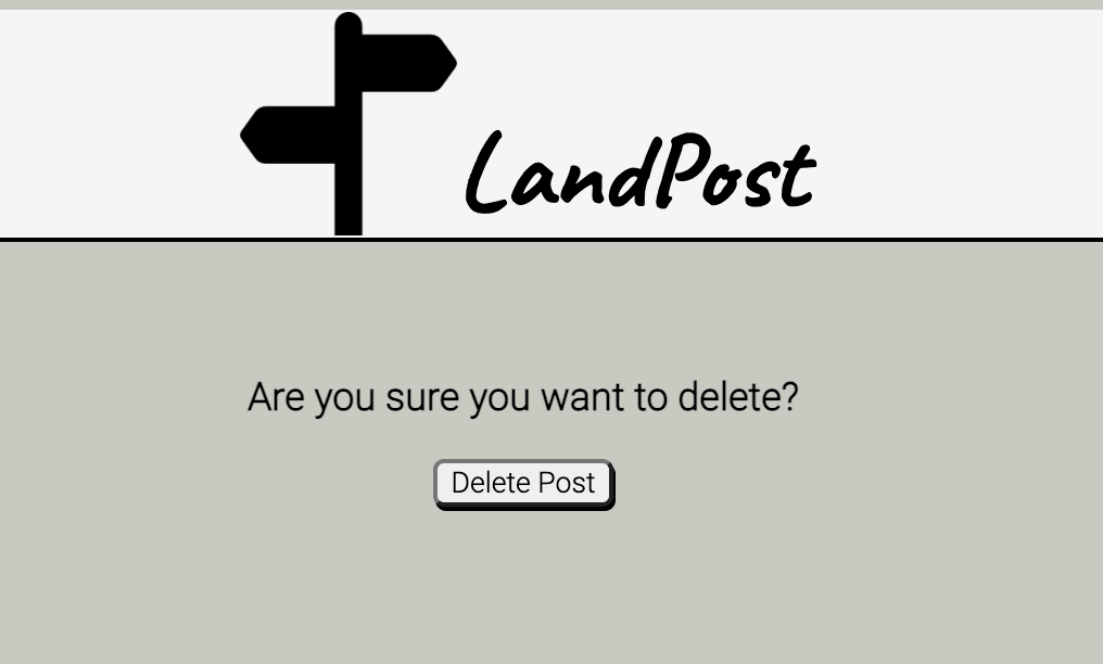 On the index page, the user is presented with options. They may either logout (ends the session and returns to login), click on a post to navigate to its show page, or create a new post (directs user to create new post page). At any point in the user's experinece after logging in, the user can navigate to the main index page by clicking the LandPost logo at the top navigation bar.