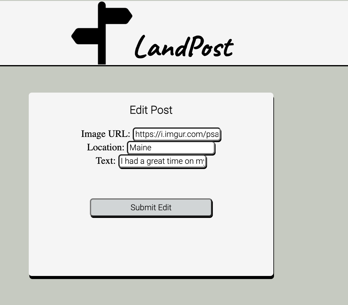 LandPost is an environmentally focused blog which allows users to upload posts in the form of photos and bodies of text.