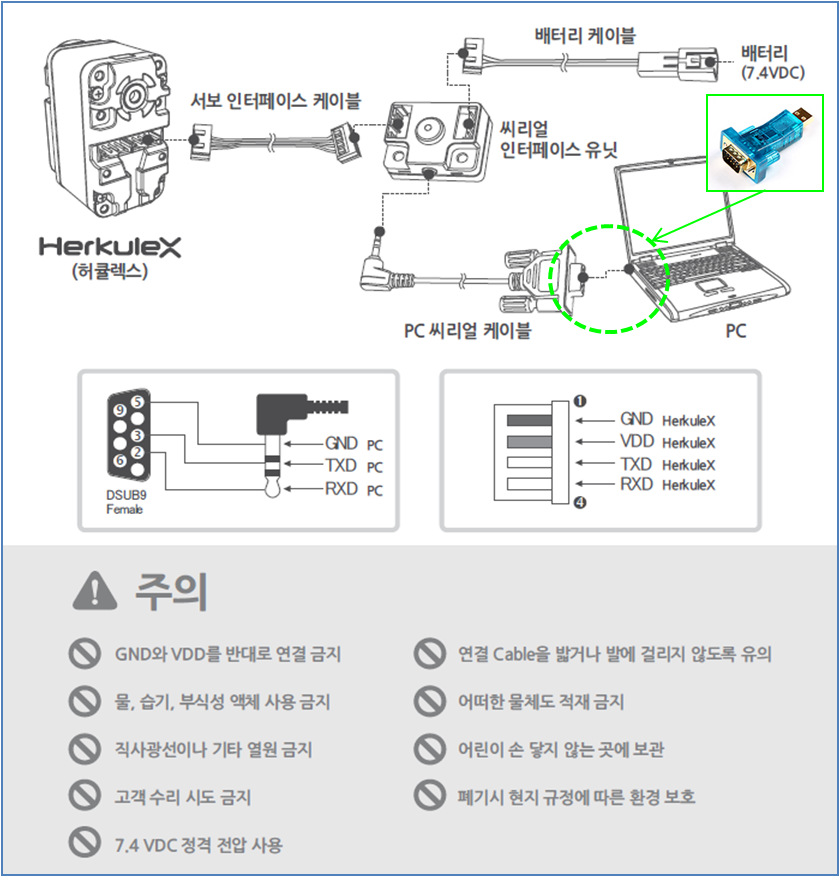그림 1. HerkuleX와 PC간의 연결 설명서