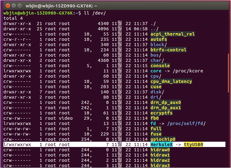 이 USB to Serial Device를 이용하여, PC와 HerkuleX간의 RS232통신을 하기 때문에 Ubuntu환경에서는 ttyUSB권한 설정 및 USB rule설정을 초기에 1회 해주어야 하며, 그 방법은 다음과 같습니다.