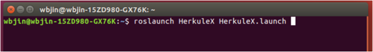 그림 8. HerkuleX Launch file의 실행을 위한 터미널 창 명령어 입력