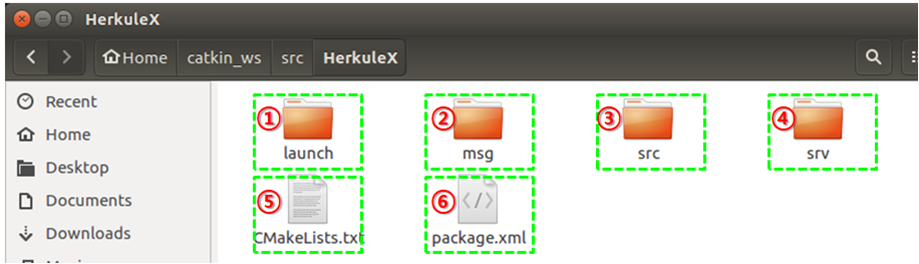 - HerkuleX ROS Package의 실행을 위한 Launch file이 들어있는 폴더.