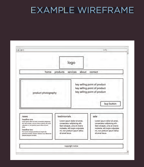 - A wireframe is a simple sketch of the key information that needs to go on each page of a site. It shows the hierarchy of the information and how much space it might require.