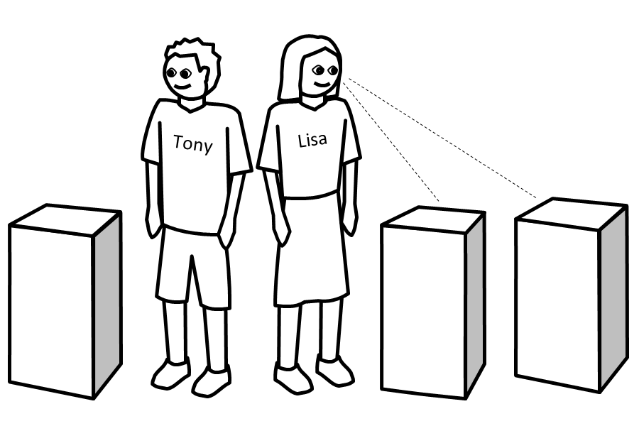 Lisa sees the same thing as Tony sees.